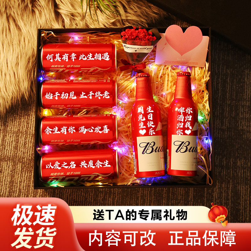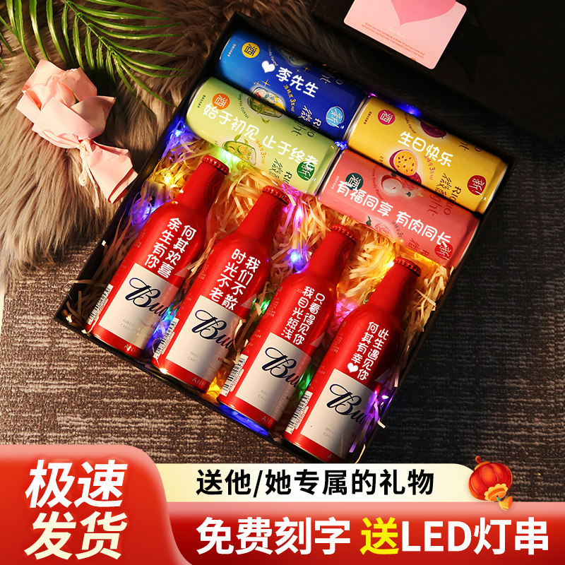淘宝百威啤酒定制刻字送男生女朋友老公老婆闺蜜生日礼物情人节七夕