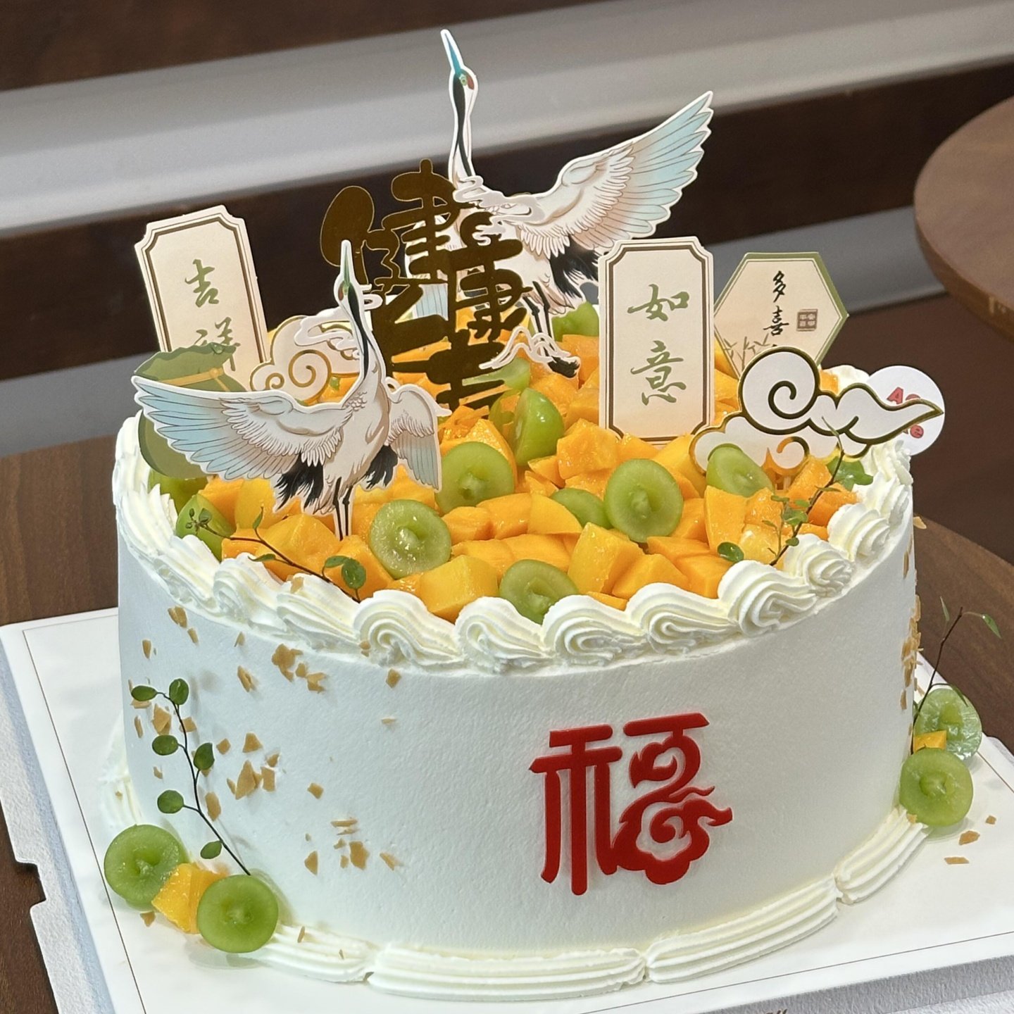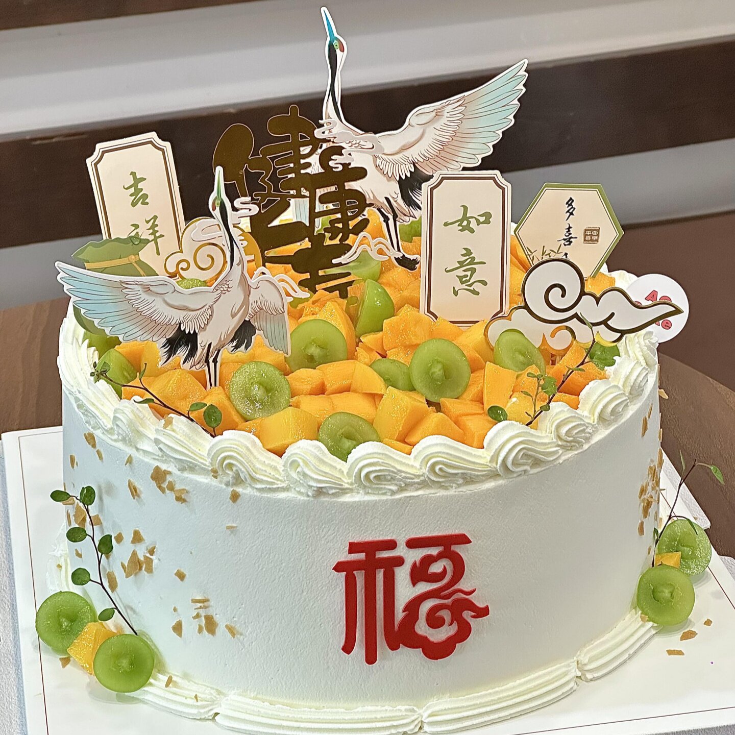 淘宝仙鹤祥云多喜乐蛋糕装饰健康长寿爷爷奶奶祝寿生日烘焙装扮插件