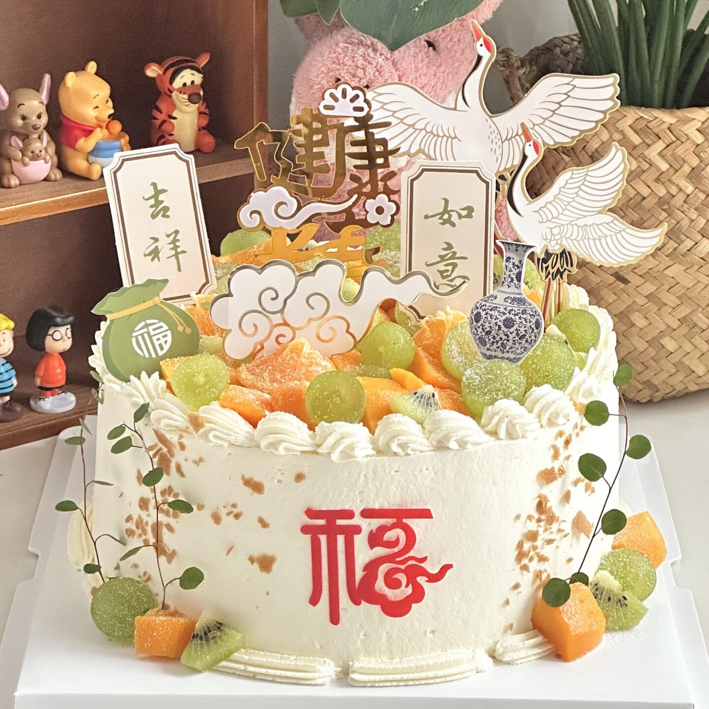 爷爷奶奶长辈祝寿生日快乐蛋糕装饰原创福气满满健康长寿烘焙插件