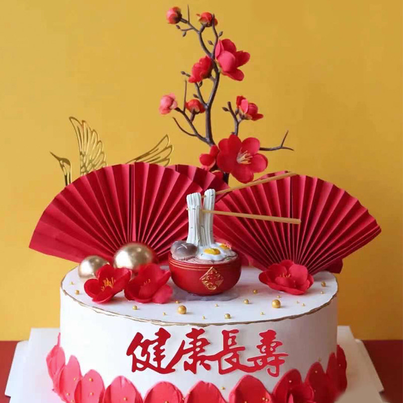 淘宝祝寿蛋糕装饰创意长寿面摆件生日蛋糕爷爷奶奶老人寿星过寿配件