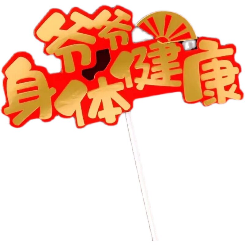 淘爷爷奶奶长辈祝寿生日快乐蛋糕装饰原创福气满满健康长寿烘焙插件