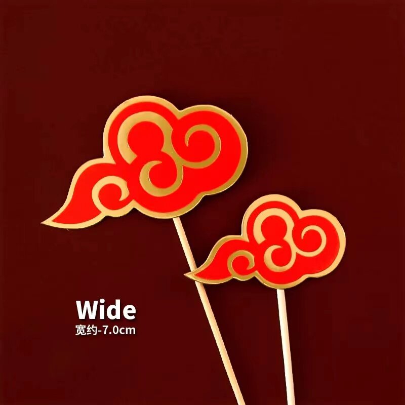 淘新中式祝寿蛋糕装饰爷爷奶奶摆件国风扇子生日甜品台装扮插件插牌