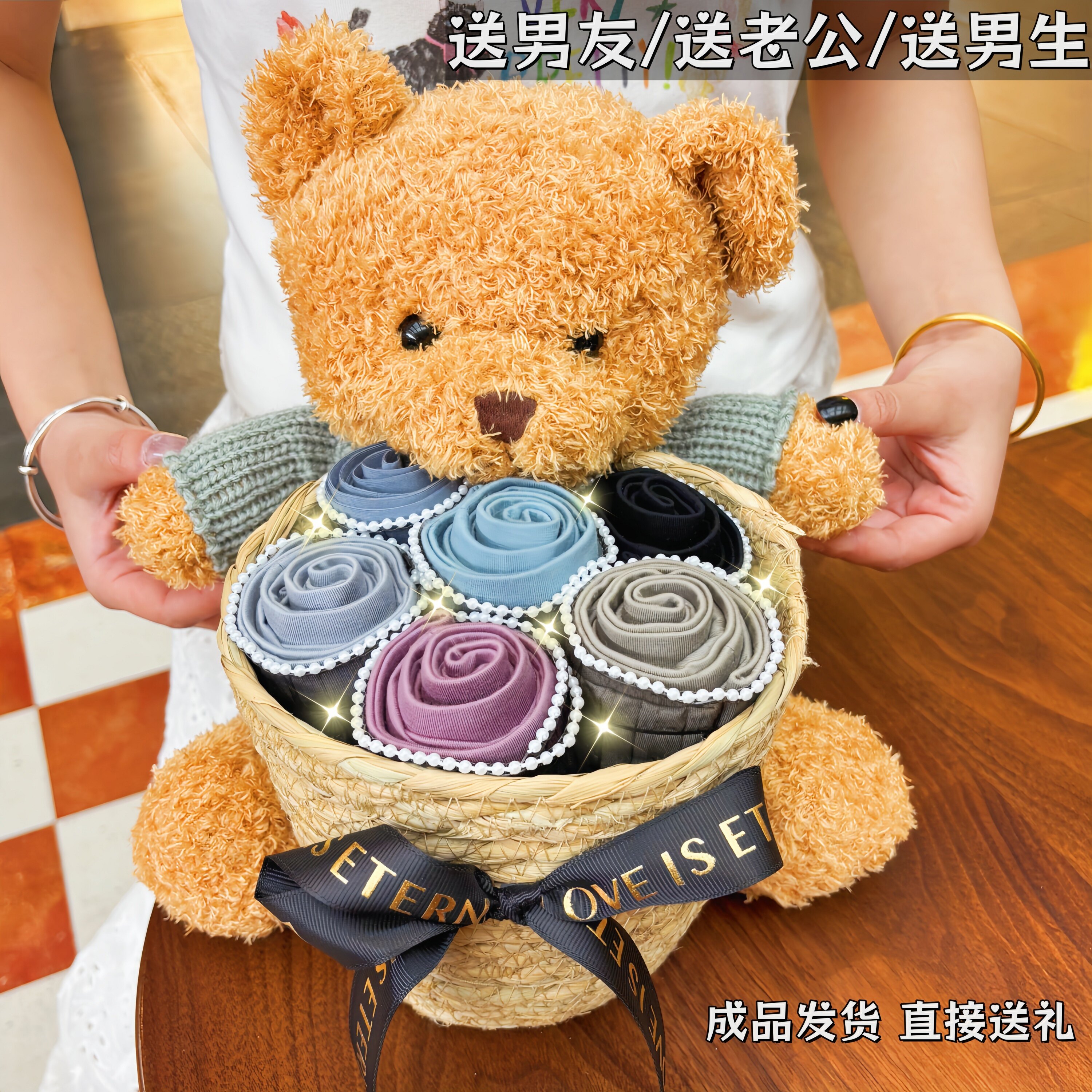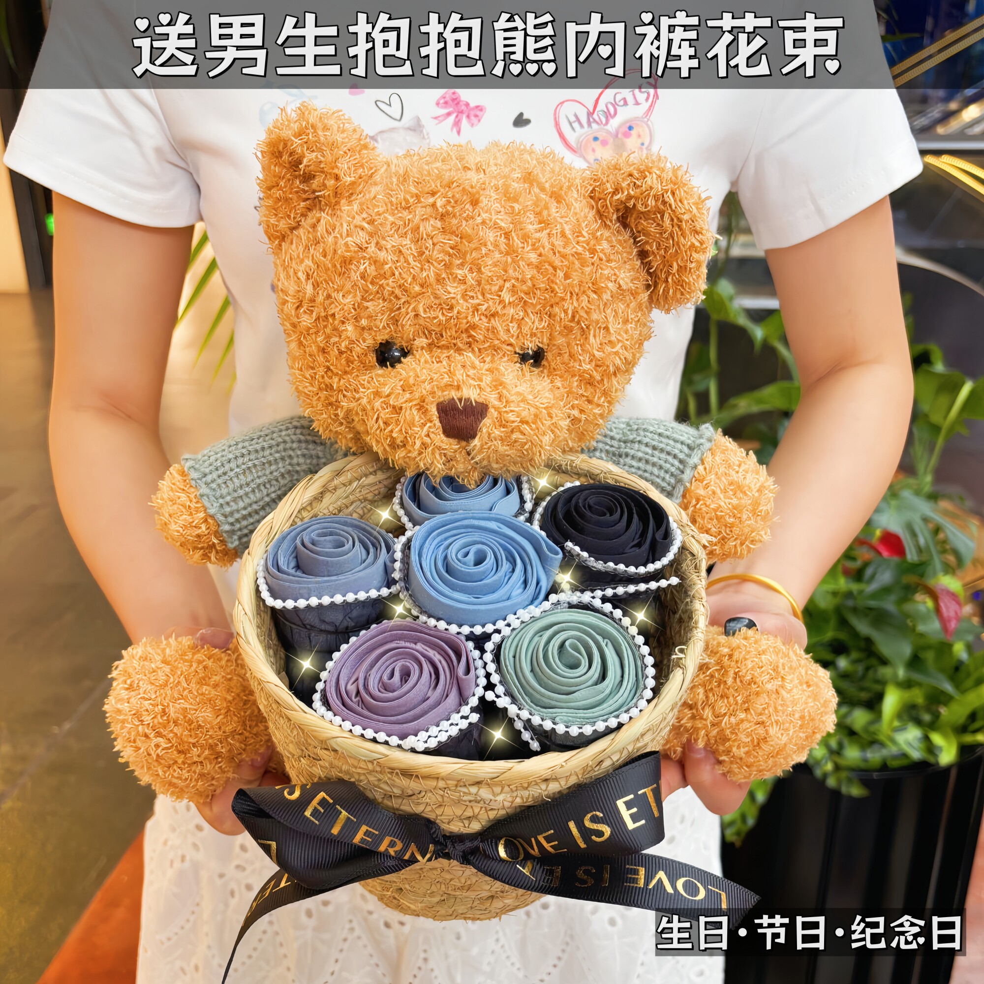 淘宝男士生日礼物送男朋友老公男生的创意惊喜小熊内裤花束情人节礼盒