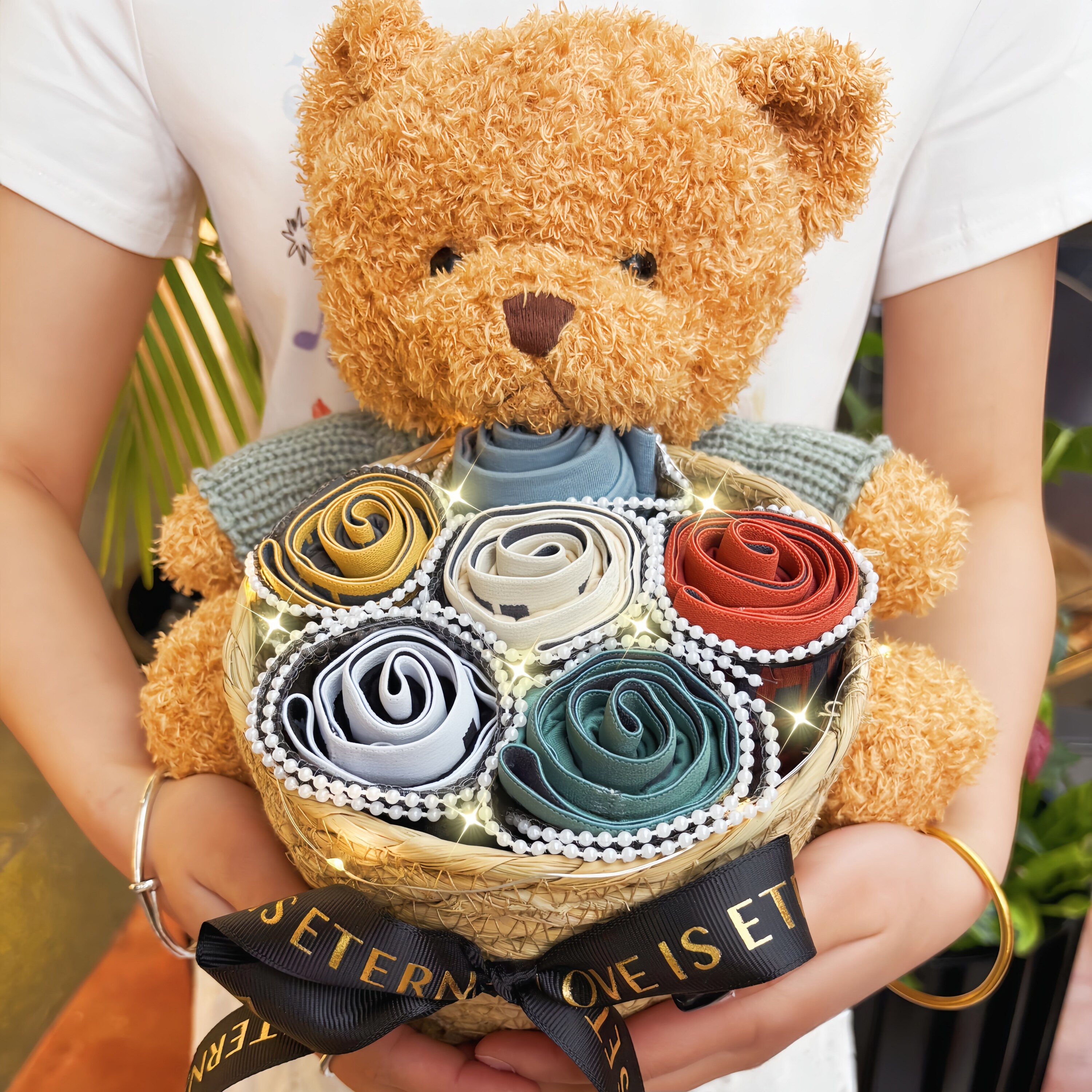 这款男士生日礼物——创意小熊内裤花束情人节礼盒,专为给男朋友、老公或心仪男生准备,集浪漫、趣味与实用于一体。礼盒将柔软舒适的内裤巧妙设计成“花束”造型,搭配可爱小熊装饰,打破传统送礼模式,惊喜感十足。包装精美,附赠贺卡,适合生日、情人节、纪念日等特殊时刻。既贴心又充满幽默感,展现你的用心与独特品味。不仅是一份礼物,更是情感的表达,让他在打开瞬间感受到满满爱意与温暖。实用与创意兼具,是送给现代男士的绝佳选择,轻松俘获他的心。