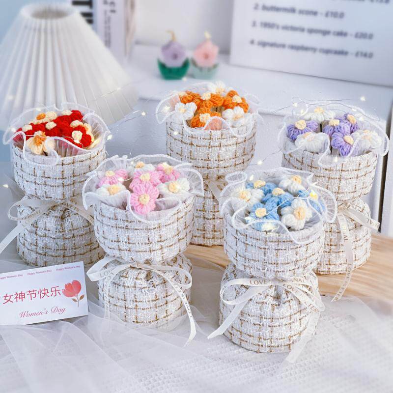 淘宝创意生日礼物女生送闺蜜妈妈小香风泡芙伴手毛线花成品教师节惊喜